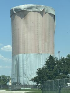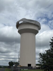 Painting (or recoating) a water tower occurs approximately every 25-30 years. This is done for two reasons – corrosion prevention and aesthetics. The exterior coating protects the steel structure from rust and other environmental damage. Repainting also allows for aesthetic improvements and branding opportunities.